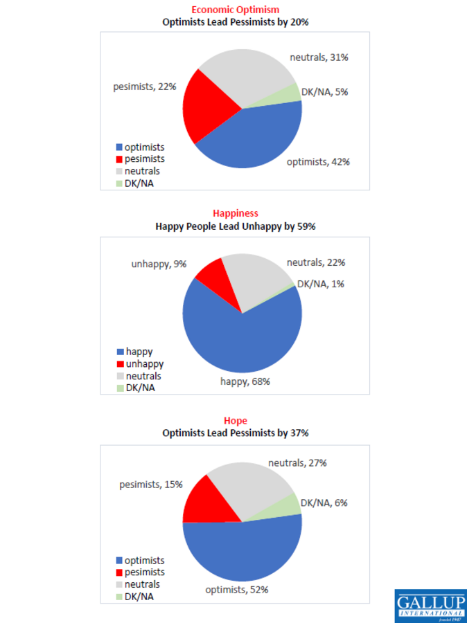 The End of Year Survey is an annual tradition initiated by and designed under the chairmanship of Dr. George Gallup in 1977. It is conducted every year since then. This year it was carried out by the Gallup International Association in 66 countries around the world.