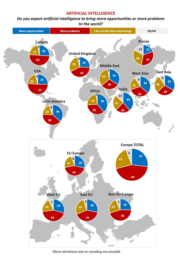 Worldwide societies in wealthier countries and regions show notably higher shares of personal satisfaction with wage. Huge countries like India and regions Africa again stand out with smallest shares of people happy with their payment – between 20% and 30%. Western societies (Europe – both EU and Non-EU countries), USA, and again Latin America rank highest in people’s satisfaction with wage.