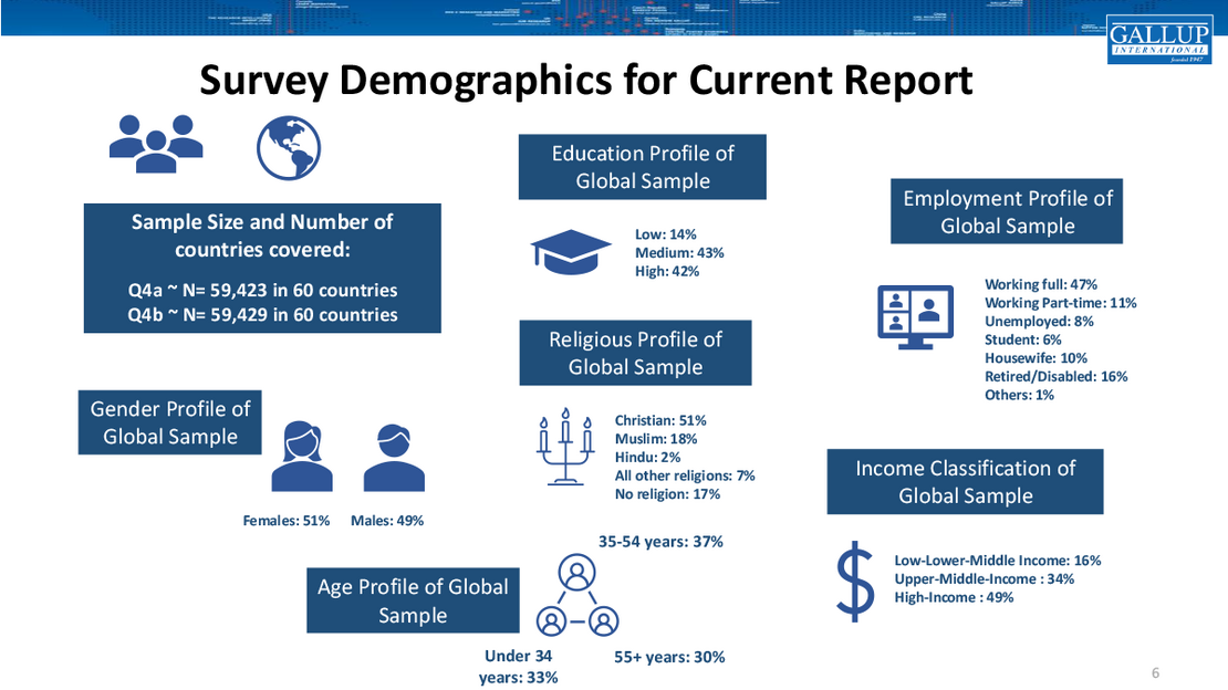 This press release is based on data from 60 countries in the Gallup International End-of-Year Survey 2025, with 59,423 respondents for Q4a and 59,429 respondents for Q4b. In each country, typically around 1,000 respondents were interviewed between October and December 2025.